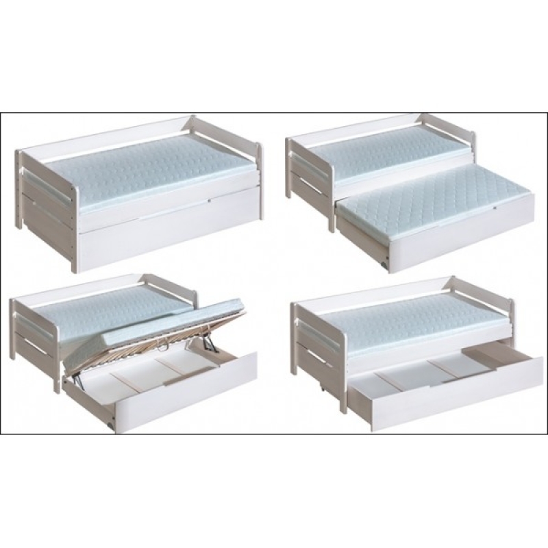 K posteli si môžete objednať úložný priestor 129 € alebo dolné spanie na lamelovom rošte s výklopným úložným priestorom za 209 €
