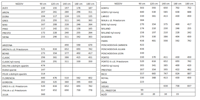 Postele sú vyrobené z kvalitného borovicového dreva, z ponuky si môžete vybrať rozmer 90, 120, 140, 160, 180 X 200 cm