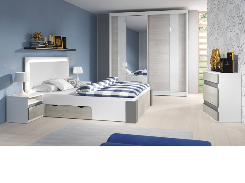 Jednotlivé prvky je možné samostatne objednať. Bližšie informácie o rozmeroch a cenách nájdete v sekcii postele, skrine alebo nás kontaktujte.